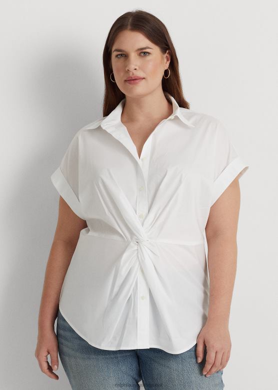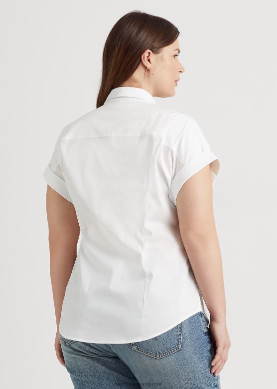 Жене Ralph Lauren памучна кошуља кратких рукава са увијањем V2V444624 бео