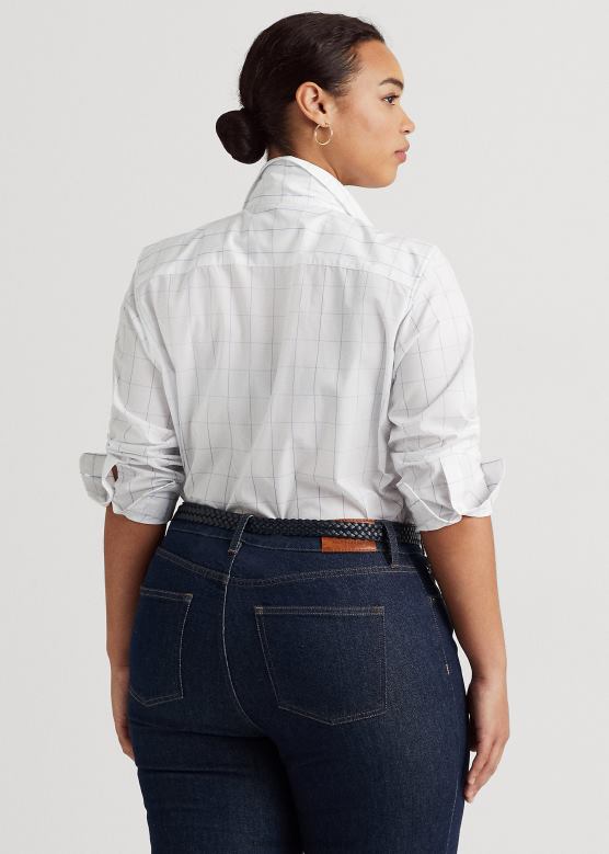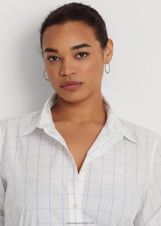 Жене Ralph Lauren памучна кошуља од прозорског стакла V2V444598 бело/плаво