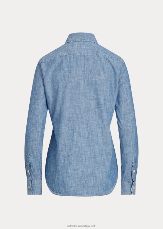 Жене Ralph Lauren памучна шамбре кошуља равног кроја V2V444753 бср индиго