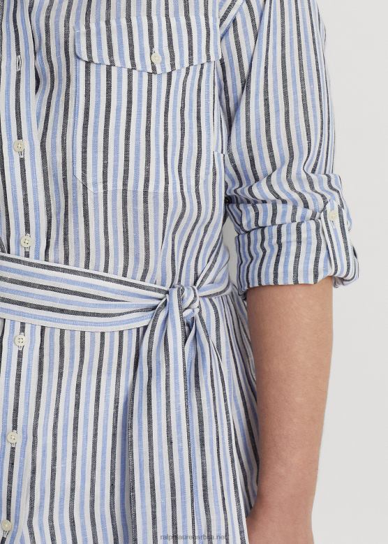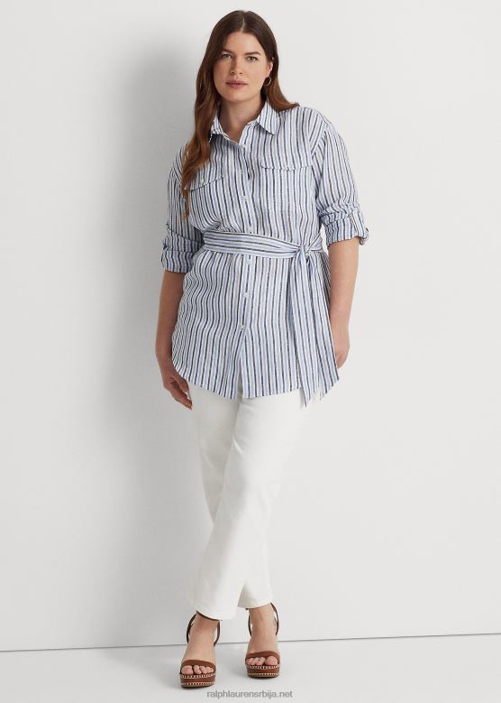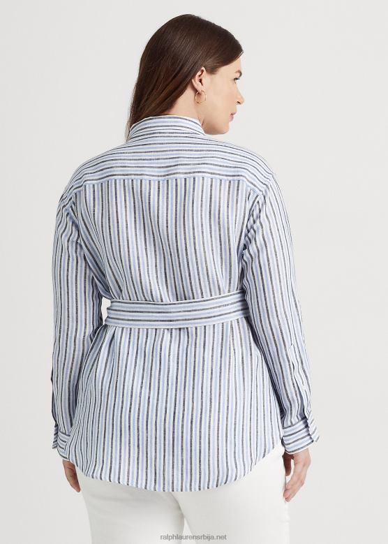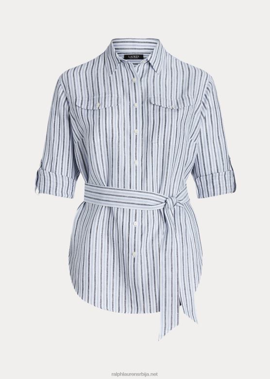 Жене Ralph Lauren пругаста ланена кошуља са појасом V2V444611 плаво/бело мулти