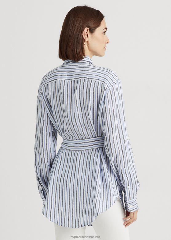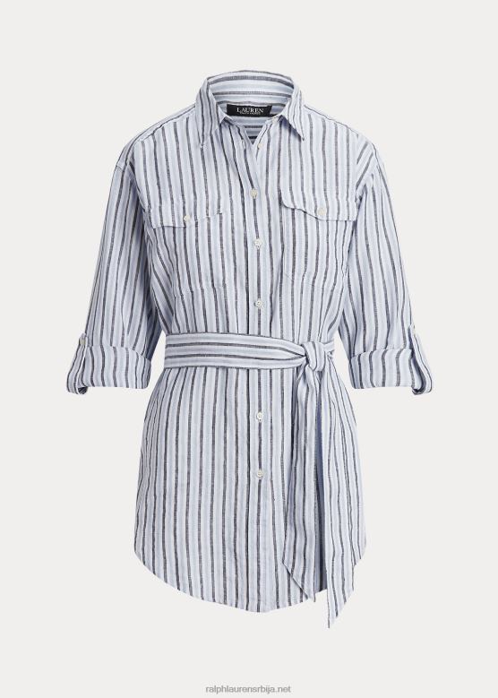 Жене Ralph Lauren пругаста ланена кошуља са појасом V2V449478 плаво/бело мулти