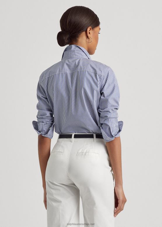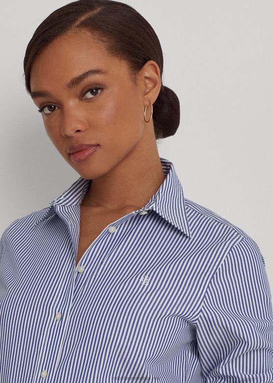 Жене Ralph Lauren пругаста памучна кошуља која се лако одржава V2V444182 плаво бели