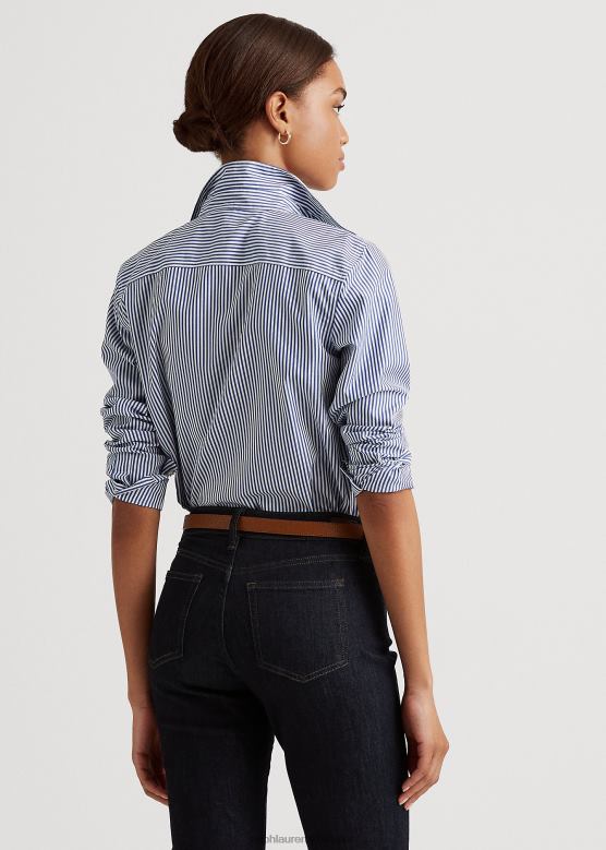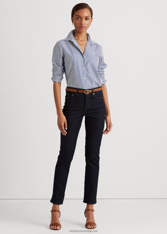 Жене Ralph Lauren пругаста памучна кошуља која се лако одржава V2V444483 плаво бели