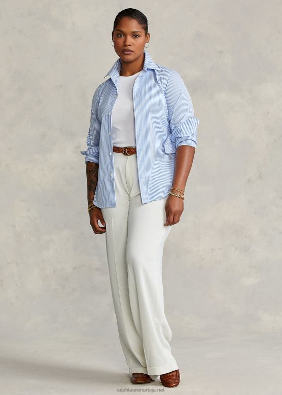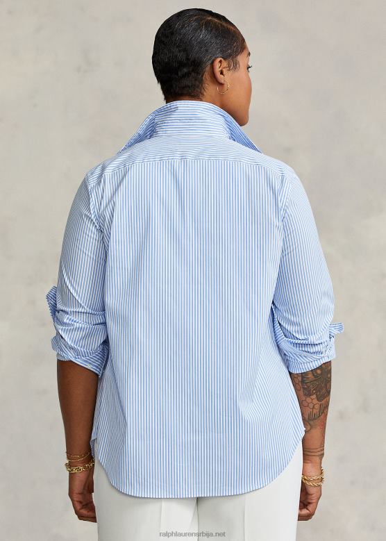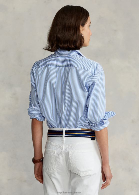 Жене Ralph Lauren пругаста памучна кошуља опуштеног кроја V2V443281 средње плава/бела