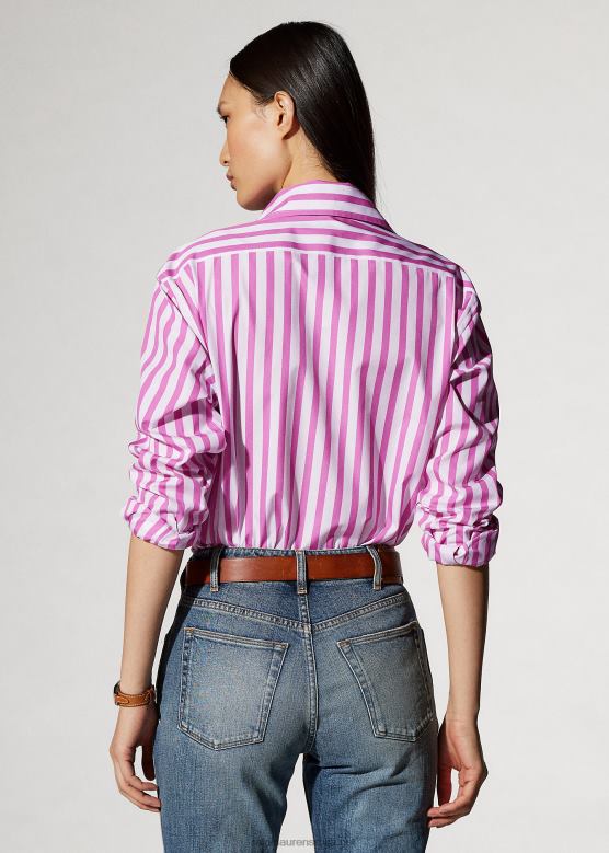 Жене Ralph Lauren пругаста памучна кошуља V2V449337 жвакаћа гума розе/бела