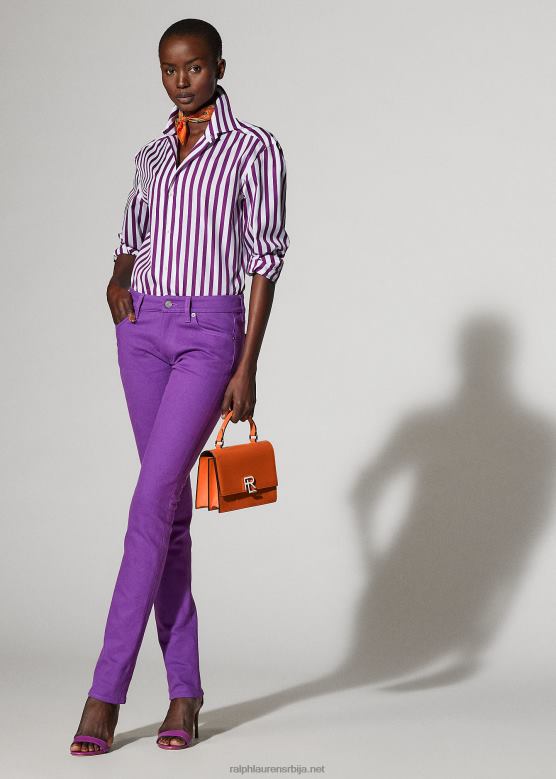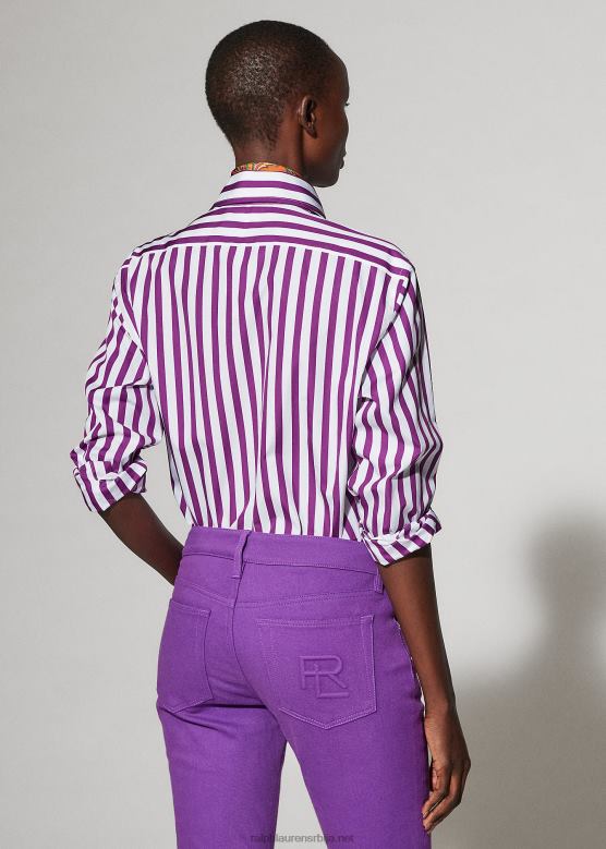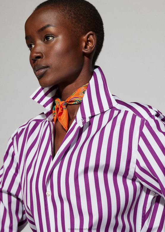 Жене Ralph Lauren пругаста памучна кошуља V2V449343 светла бобица/бела