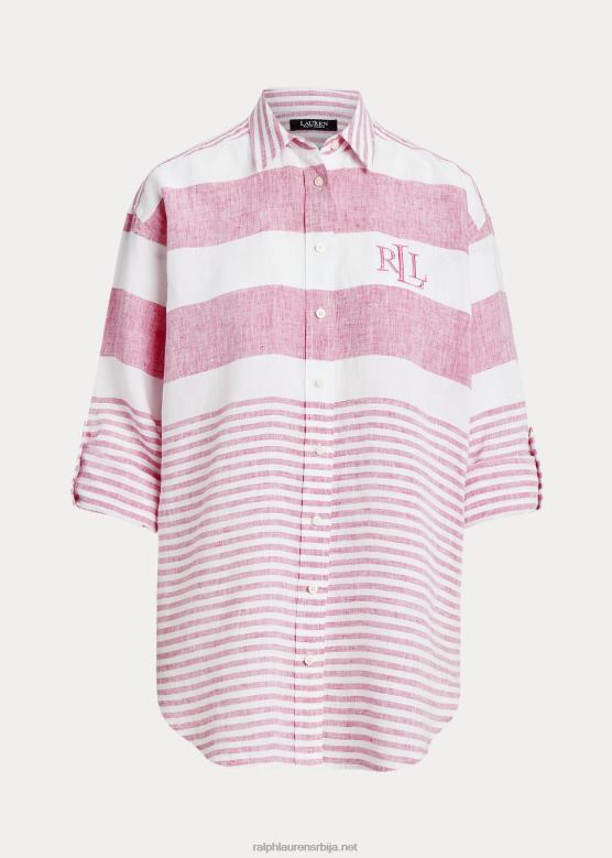 Жене Ralph Lauren пругаста превелика ланена кошуља V2V444358 спорт пинк/бела
