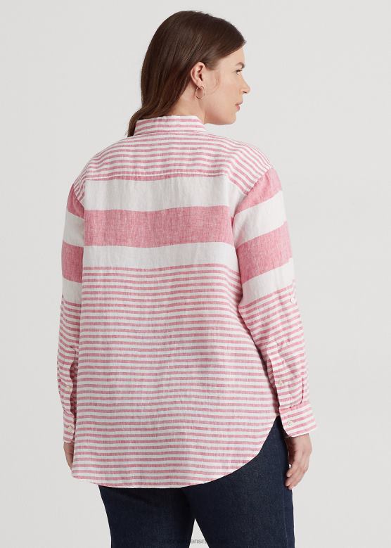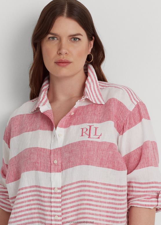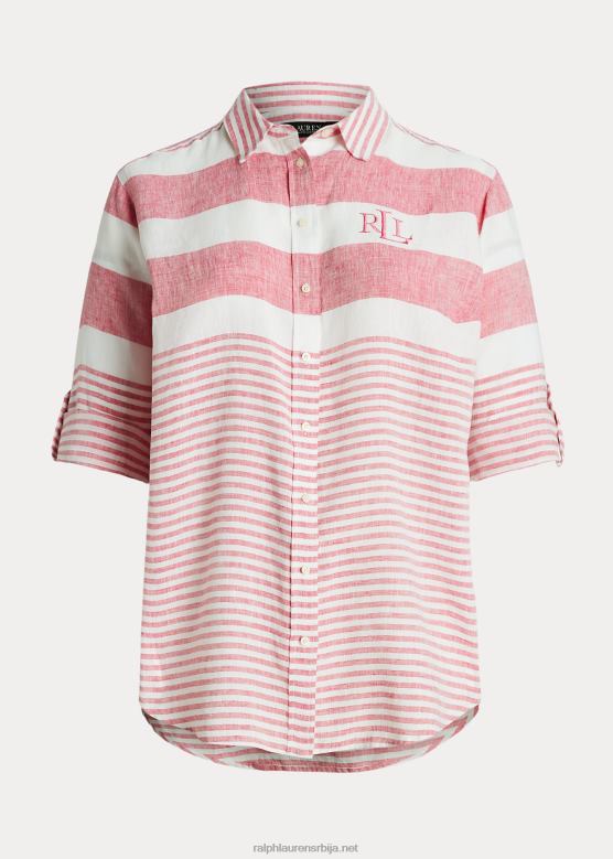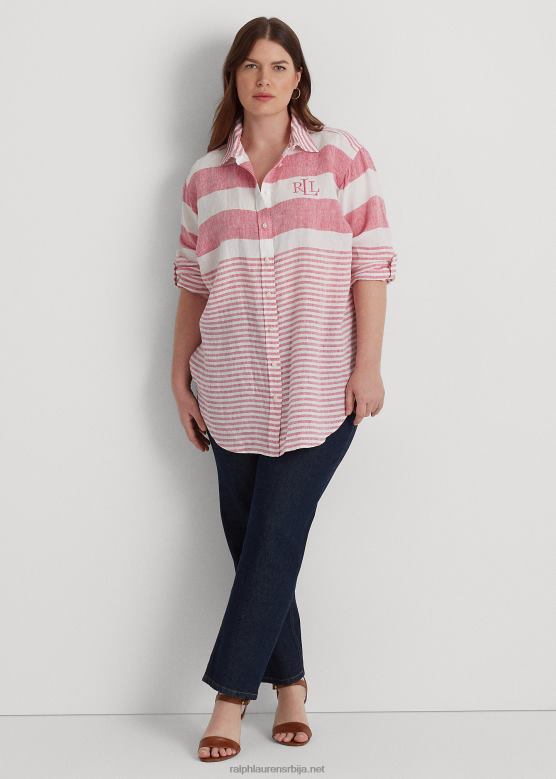 Жене Ralph Lauren пругаста превелика ланена кошуља V2V444546 спорт пинк/бела