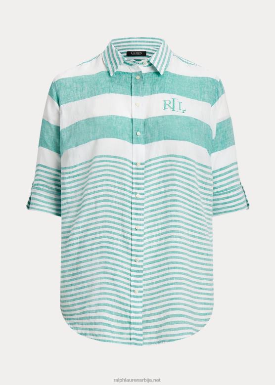 Жене Ralph Lauren пругаста превелика ланена кошуља V2V444548 палмин лист/бело