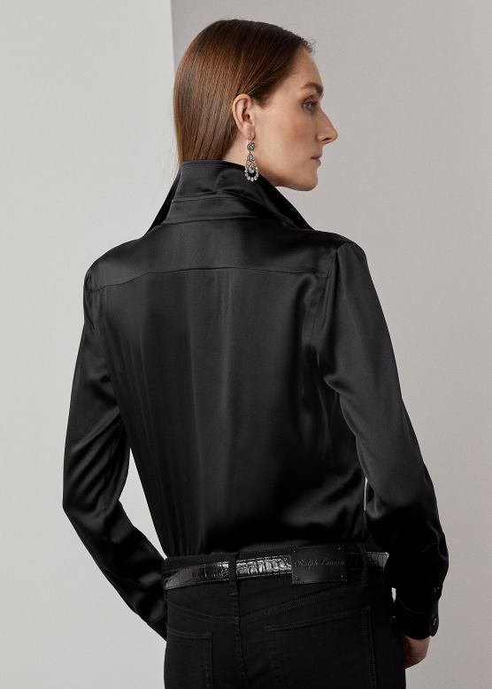 Жене Ralph Lauren цамерон растегљива свилена кошуља од дуда V2V449333 црн