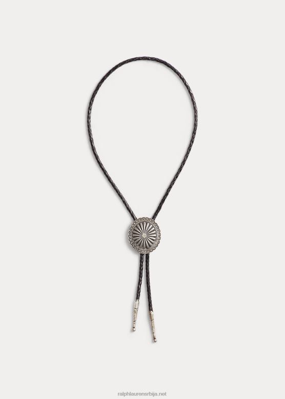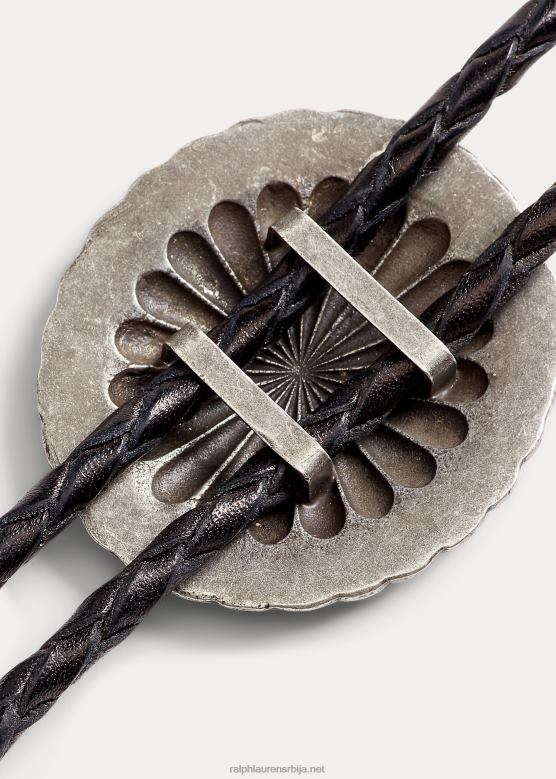 мушкарци Ralph Lauren плетена кожна боло кравата V2V448914 црна/втг сребрна