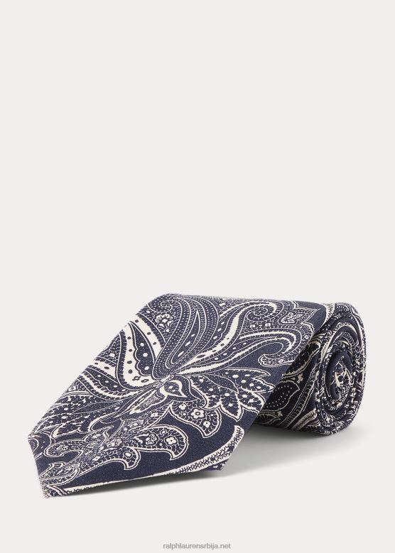 мушкарци Ralph Lauren ручно рађена свилена кравата од пејзлија V2V448828 морнарско/сигурно бела