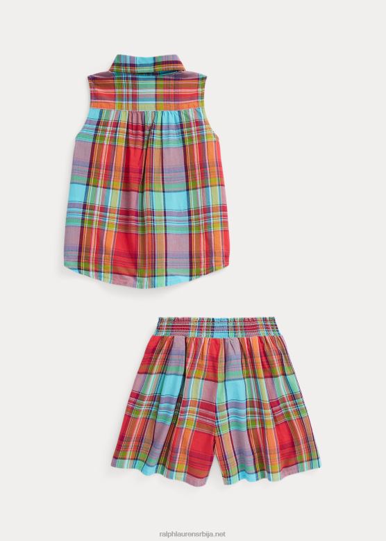 клинци Ralph Lauren мадрас мајица без рукава и кратки комплет V2V447140 црвени мулти