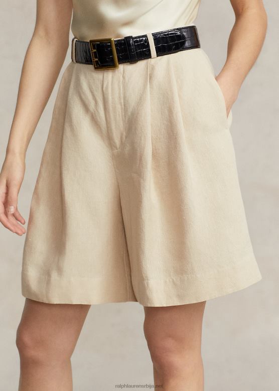 Жене Ralph Lauren опуштено кројење дуго набрано лан кратко V2V442917 основни песак