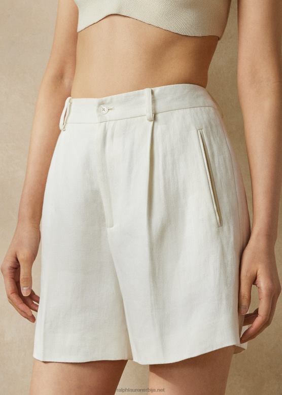 Жене Ralph Lauren трејси плисирани лан кратки V2V443481 бело