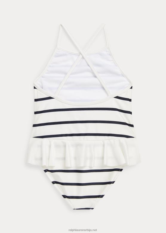 клинци Ralph Lauren пругасти растезљиви једноделни купаћи костим V2V447342 прање палубе бела/плава