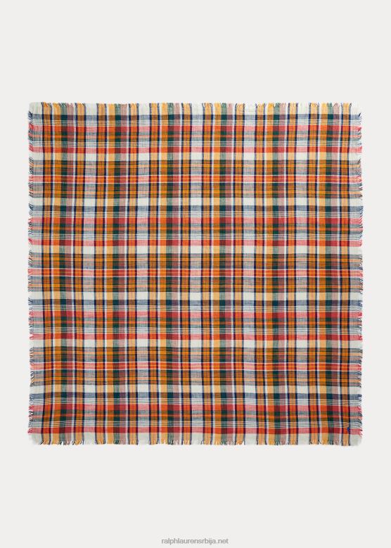 <п><п>са карираним мотивом инспирисаним Мадрасом, овај велики шал је завршен са ресама и нашим препознатљивим везеним понијем на једном углу.<п>п>