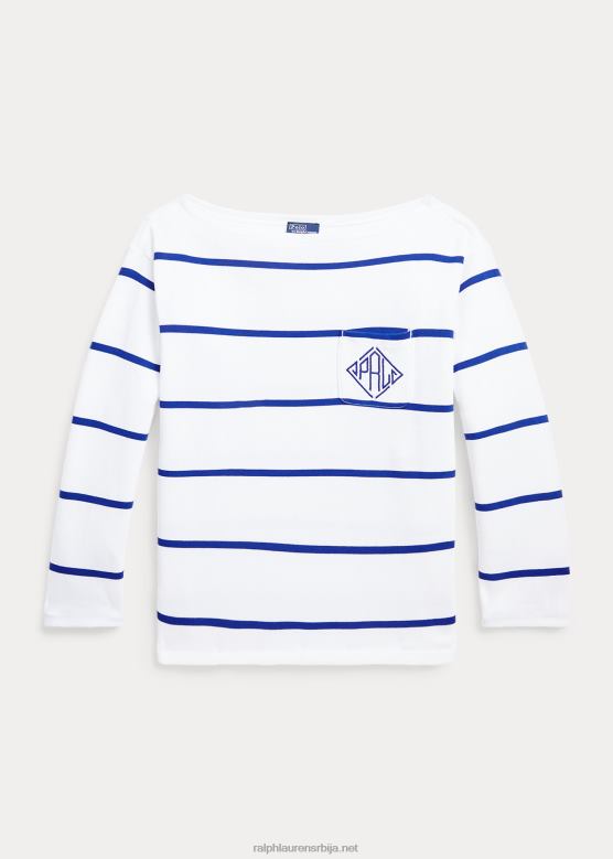 Жене Ralph Lauren мајица мајица на пруге са монограмом и логотипом V2V443029 бели/сјајни сафир