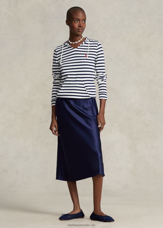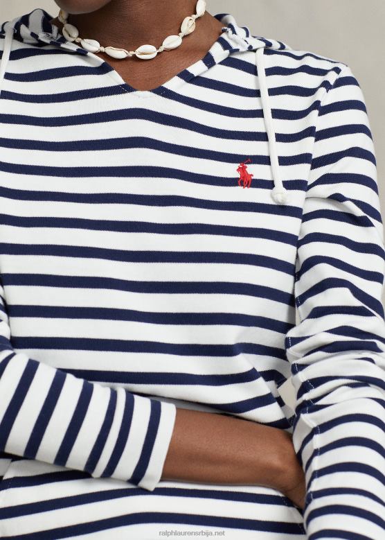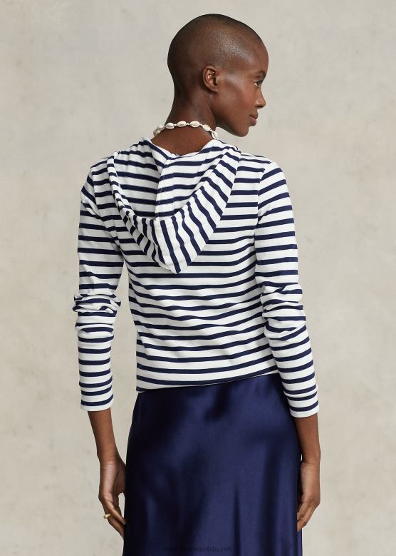 Жене Ralph Lauren мајица са капуљачом на пругасти дрес V2V443037 трофеј крем / рафинисана морнарица