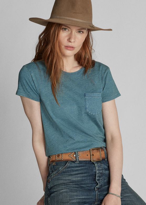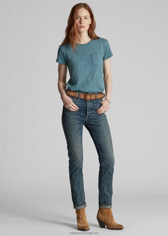 Жене Ralph Lauren памучна џепна мајица V2V449378 испрани плави индиго
