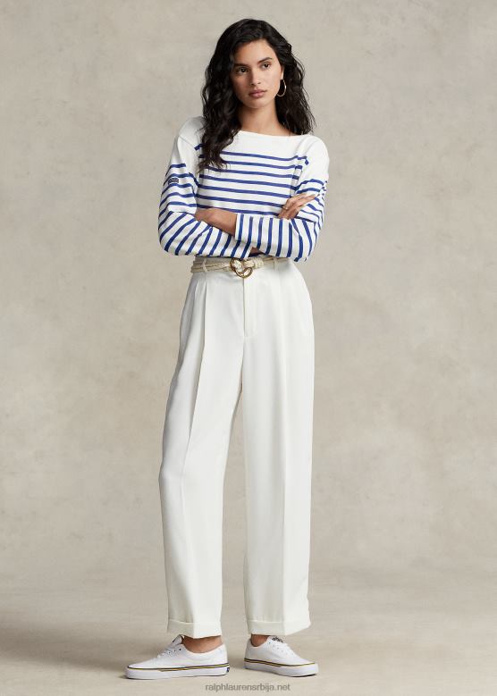 <п><п>ова мајица од дреса инспирисана наутиком обједињује танке хоризонталне пруге са изрезом у облику чамца и нашу ткану етикету „поло ралпх лаурен & цо.“.<п>п>