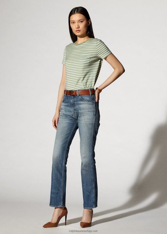 Жене Ralph Lauren пругаста мајица са широким џепом V2V449126 мента/бели