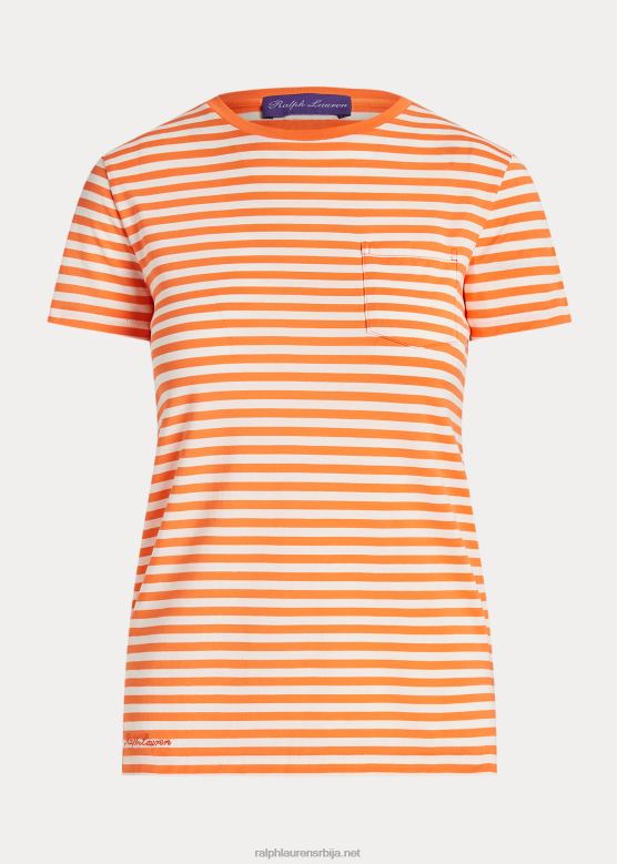 Жене Ralph Lauren пругаста мајица са широким џепом V2V449129 мак наранџасти/бели