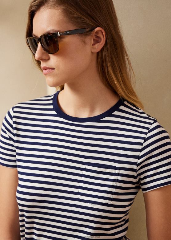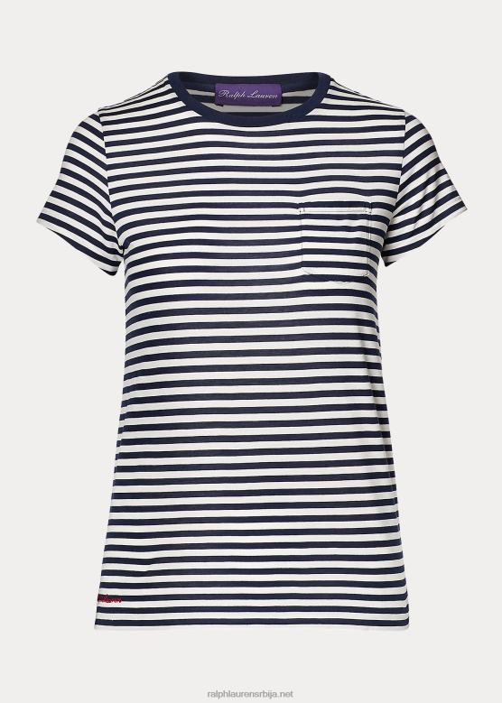 Жене Ralph Lauren пругаста мајица са широким џепом V2V449131 тамноплава/бели