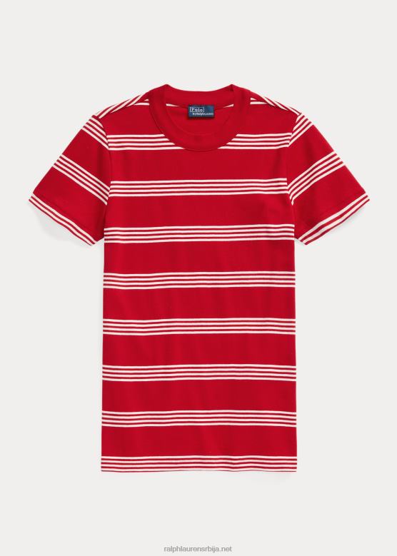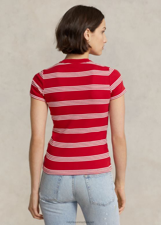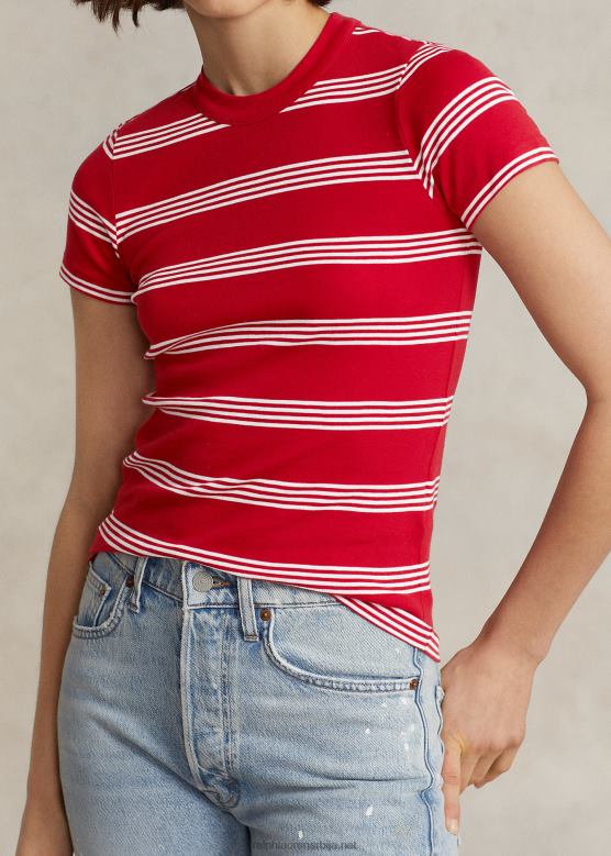 Жене Ralph Lauren пругаста ребраста памучна мајица са округлим изрезом V2V442920 рл2000 црвено/бело