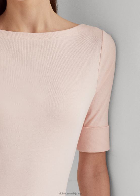 Жене Ralph Lauren растезљива памучна мајица са овратником V2V443939 бледа ружа