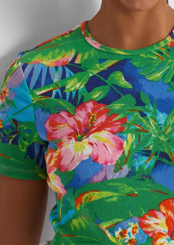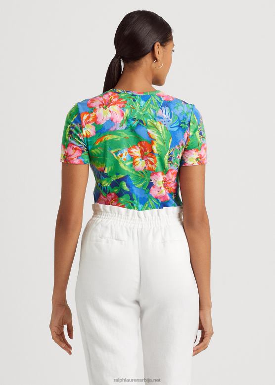 Жене Ralph Lauren растезљива памучна мајица са цветним мотивом V2V443845 зелено/плаво мулти