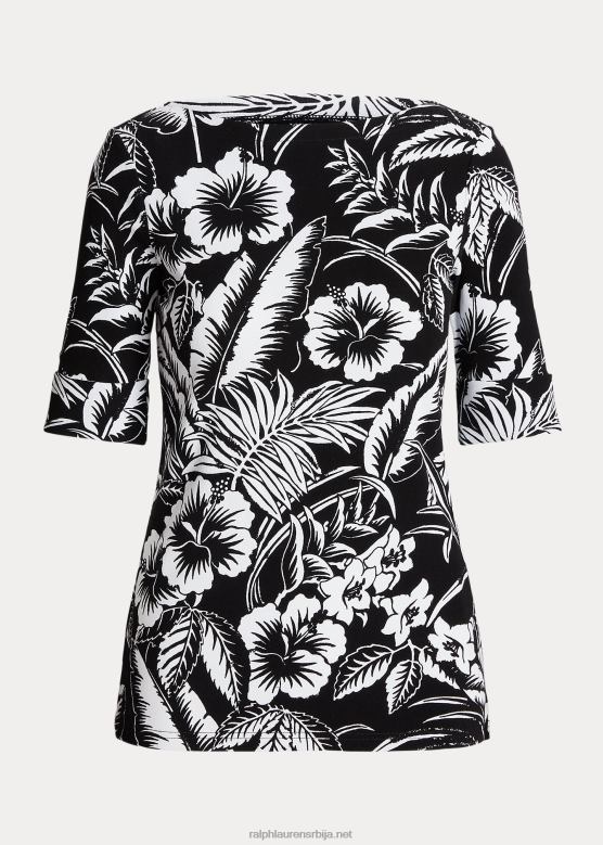 Жене Ralph Lauren растезљива памучна мајица са цветним мотивом V2V444346 црно бели