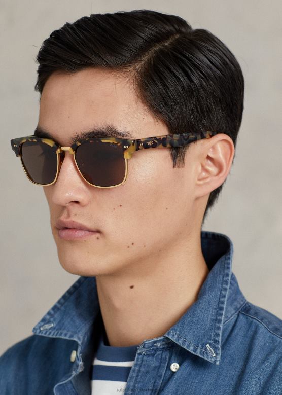 мушкарци Ralph Lauren квадратне академске наочаре за сунце V2V449061 сјајна тамна хавана