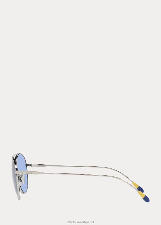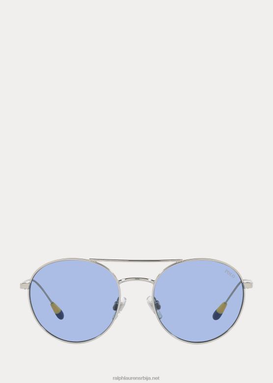 мушкарци Ralph Lauren металне панто наочаре за сунце V2V442239 сјајно сребро