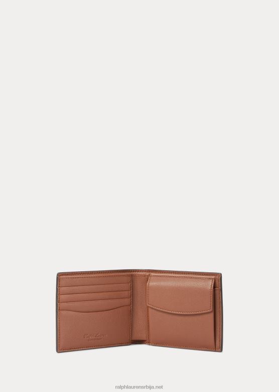 мушкарци Ralph Lauren новчаник од телеће коже са металним плакетом V2V449018 кестен