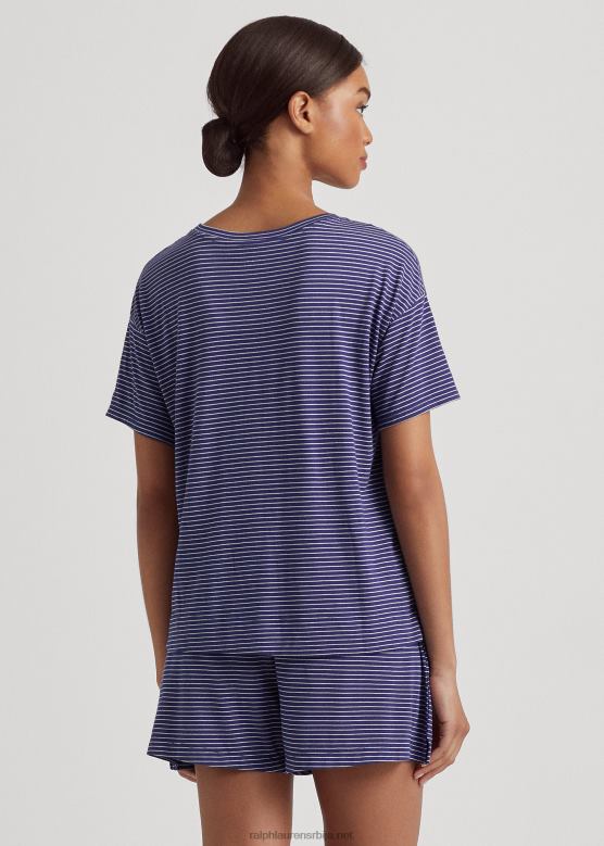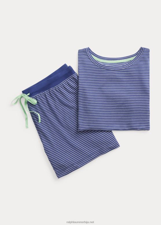 Жене Ralph Lauren Боксерица пиџама у пругама са логотипом V2V443944 морнарска трака