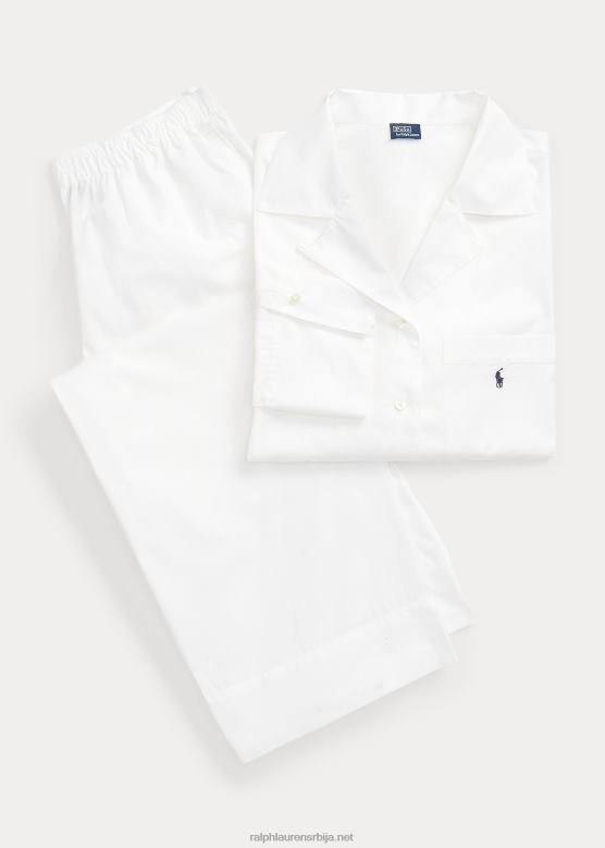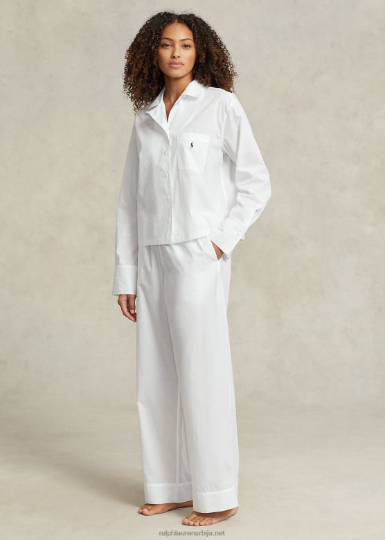 Жене Ralph Lauren комплет пиџаме од поплина дугих рукава V2V443013 Бели облак