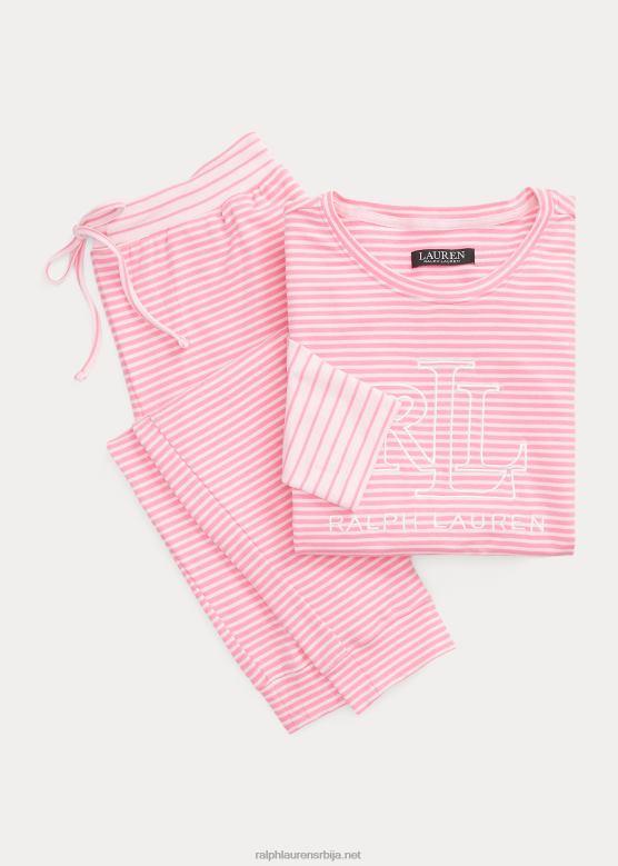 Жене Ralph Lauren пругаста француска фротираста џогер пиџама V2V444150 розе принт