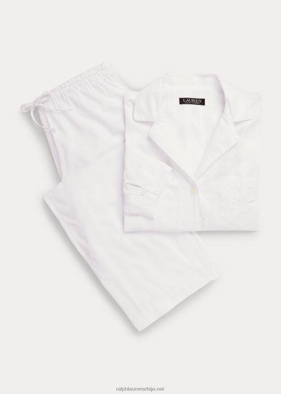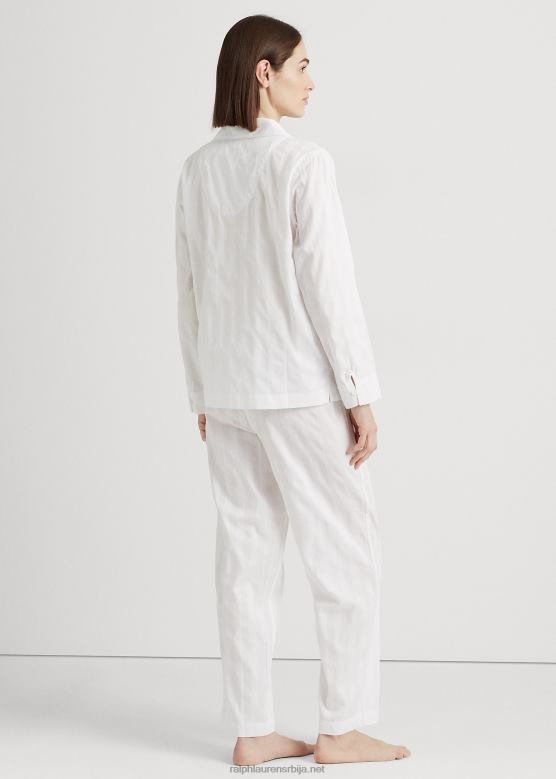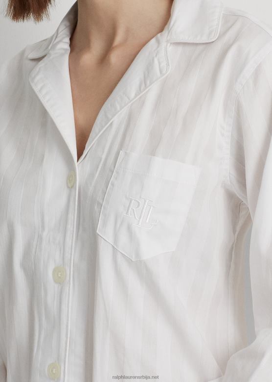 Жене Ralph Lauren пругасти памучни жакард сет за спавање V2V444139 бео
