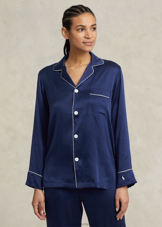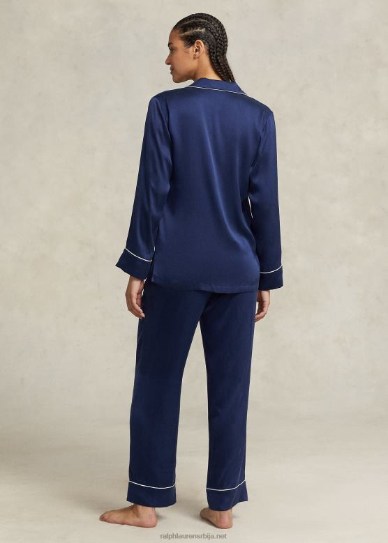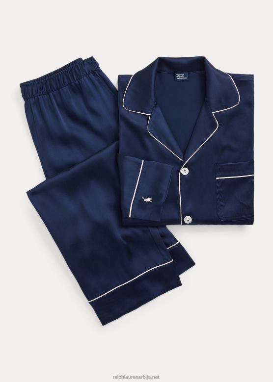 Жене Ralph Lauren сет од растезљиве свилене пиџаме са дугим рукавима V2V443008 морнарица