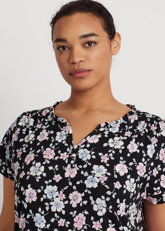 Жене Ralph Lauren спаваћица са лепршавим рукавима са цветним дресом V2V444711 црни приземни цветни