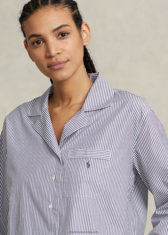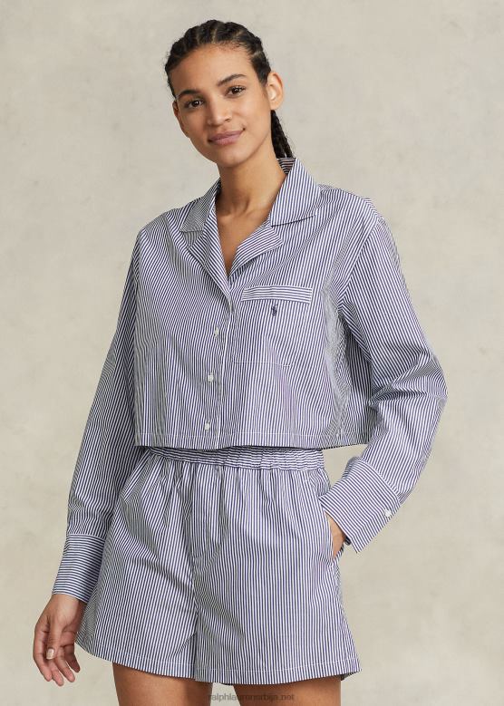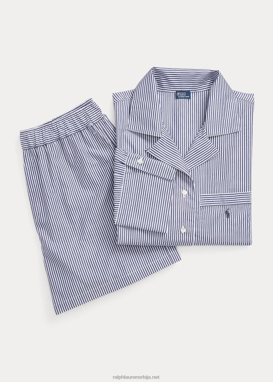 Жене Ralph Lauren Цроп топ & боксер поплин пиџама V2V443009 морнарска трака