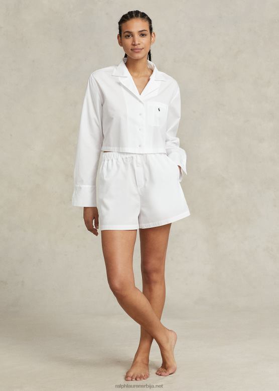Жене Ralph Lauren Цроп топ & боксер поплин пиџама V2V443015 Бели облак