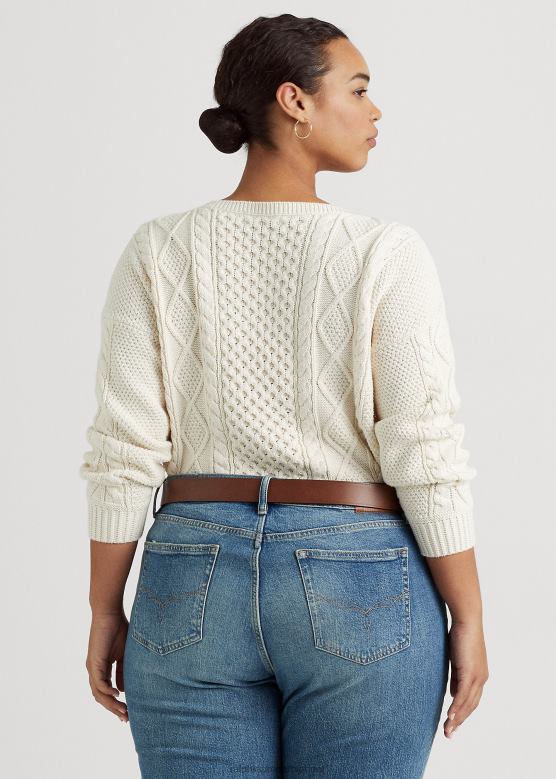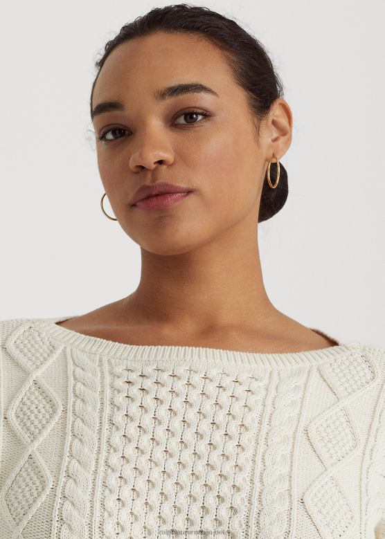 Жене Ralph Lauren џемпер од аран-плетеног памука V2V444589 крема од маскарпонеа