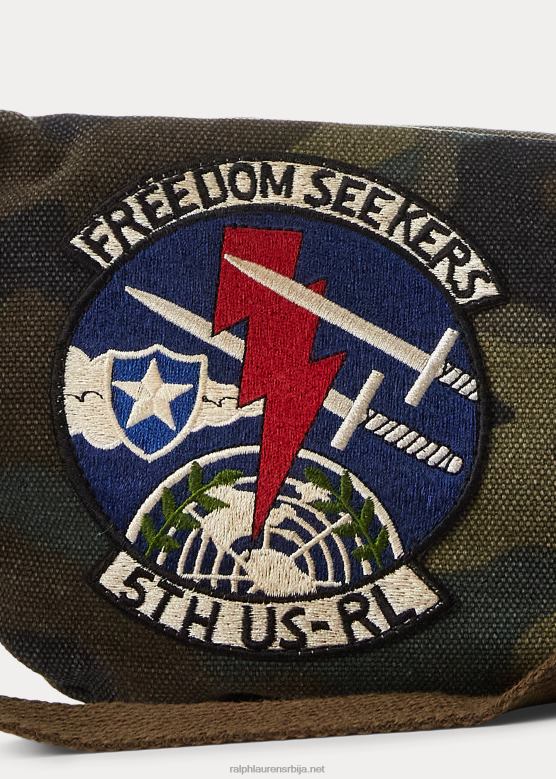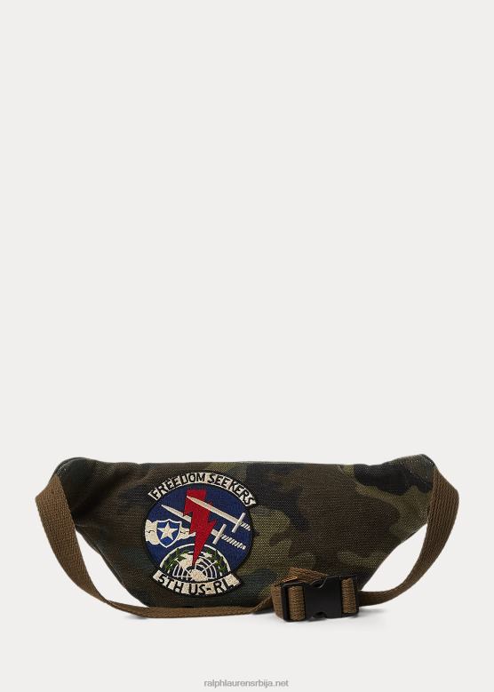 <п><п>Ово издржљиво платнено паковање струка има маскирни принт и еклектичну мешавину закрпа, укључујући ричућег тигра са потписом поло.<п>п>
