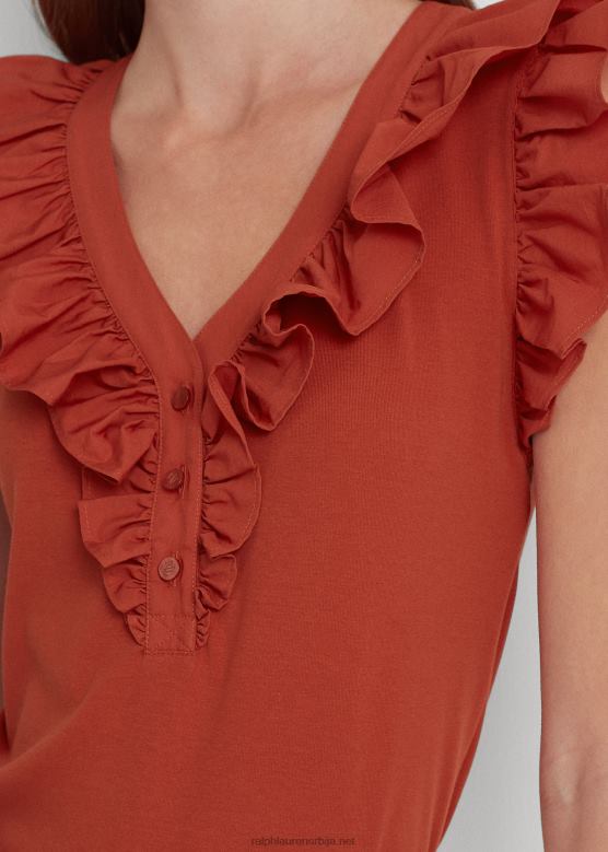 Жене Ralph Lauren памучна мајица без рукава са наборима V2V443785 црвени сунчани камен
