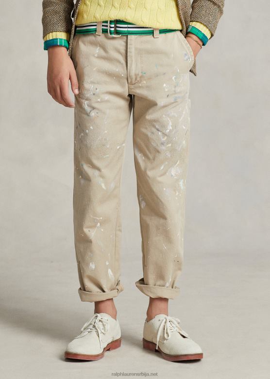 <п><п>ове памучне цхино панталоне добијају уметничко ажурирање са одштампаним и ручно нанешеним прскањем боје.<п>п>