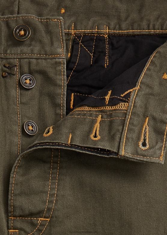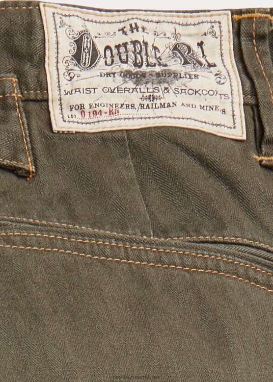 мушкарци Ralph Lauren официрске ланено-памучне панталоне од рибље кости V2V441756 шумски зелено