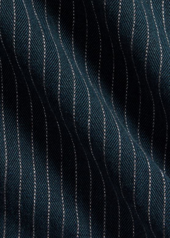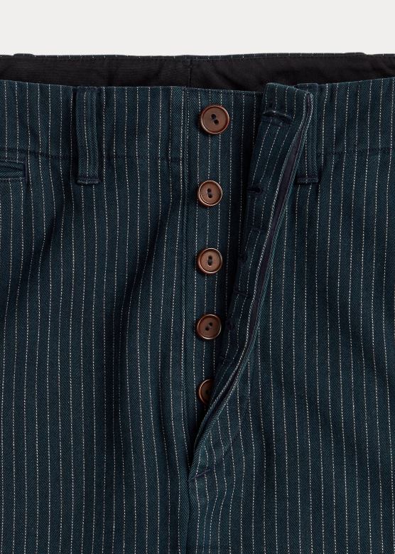 <п><п>укројене панталоне са равним ногавицама. направљено од тканине рибље кости у пругама из Јапана. опран за изглед истрошеног времена. корозо дугмад.<п>п>