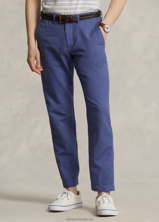 мушкарци Ralph Lauren панталоне од лана и памука равног кроја V2V44484 плаво небо